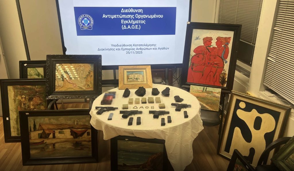 Από αστυνομικούς της Διεύθυνσης Αντιμετώπισης Οργανωμένου Εγκλήματος, συνελήφθησαν πρωινές ώρες της Τρίτης, 25 Νοεμβρίου 2025, -2- ημεδαποί, ηλικίας 42 και 57 ετών, στο πλαίσιο διενέργειας προκαταρκτικής εξέτασης, για δοσοληψία πλήθους πλαστών πινάκων ζωγραφικής, ενώ ο 57χρονος κατηγορείται επιπλέον για παράβαση της νομοθεσίας για τα όπλα.