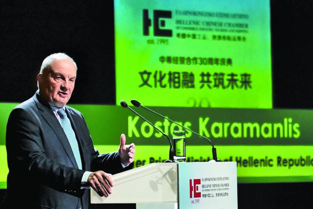 Και τελικά χαρακτήρισε ως «απόδειξη της επιτυχίας εκείνης της πολιτικής επιλογής» την κινητικότητα που εκδηλώνεται σήμερα «στην κατεύθυνση της δημιουργίας ανταγωνιστικών λιμενικών υποδομών». Εξάλλου μίλησε με νόημα για την «πολυδιάστατη προσέγγιση» της εξωτερικής πολιτικής κατά τη διακυβέρνησή του «με σκοπό να καταστήσουμε την Ελλάδα στρατηγικό κόμβο για την ευρύτερη περιοχή» – κι αυτό ερμηνεύτηκε ως αιχμή προς το Μαξίμου. Επί των ημερών Καραμανλή υπογράφτηκε (2006) η ολοκληρωμένη στρατηγική εταιρική σχέση «που έθεσε τις ελληνοκινεζικές σχέσεις σε νέα βάση και τους προσέδωσε πραγματικά στρατηγικό χαρακτήρα» και αργότερα (2008) η συμφωνία για την ανάληψη από την COSCO της λειτουργίας και διαχείρισης δύο τερματικών σταθμών εμπορευματοκιβωτίων στο λιμάνι του Πειραιά. Υπήρξε, σύμφωνα με τον πρώην πρωθυπουργό, «σύμπτωση αλληλοσυμπληρούμενων στρατηγικών επιδιώξεων» Αθήνας και Πεκίνου και τρεις στόχοι: η μετατροπή της Ελλάδας σε κύρια πύλη εισόδου κινεζικών προϊόντων προς τα Βαλκάνια και τις ευρωπαϊκές αγορές, η πιθανή συναρμολόγηση κινεζικών προϊόντων, πριν από την είσοδό τους στις αγορές αυτές, σε εργοστάσια που θα εγκαθίσταντο στην Ελλάδα και η μεταφορά των προϊόντων στις διεθνείς αγορές μέσω ελληνόκτητων πλοίων. Και ενώ ο Καραμανλής έριξε το βάρος στις ευκαιρίες και στα «αμοιβαία οφέλη» που παράγουν οι ελληνοκινεζικές σχέσεις, έκανε μια αναφορά στις «αντικειμενικές» δυσκολίες: «Μπορεί να υπάρχουν σημαντικές διαφορές μεταξύ Ελλάδας και Κίνας, κυρίως ως προς τα μεγέθη αλλά και την ένταξη σε διαφορετικούς γεωπολιτικούς σχηματισμούς, υπάρχει όμως αμοιβαίος σεβασμός».