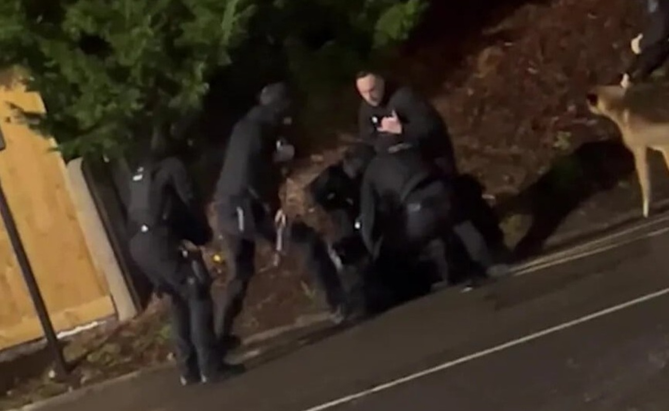 “Get him in a f**king hold!” one officer yells as he users a Taser crackles to take him down. pic.twitter.com/bxwYw62WaK