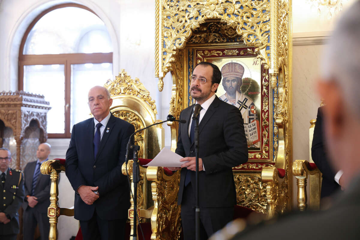 «Ενόσω η πατρίδα μας τελεί υπό τουρκική κατοχή έχουμε καθήκον και υποχρέωση να την υπερασπιζόμαστε και να τη θωρακίζουμε έναντι οποιασδήποτε απειλής», τόνισε, μιλώντας στον καθεδρικό ναό του Αποστόλου Βαρνάβα, στη Λευκωσία.