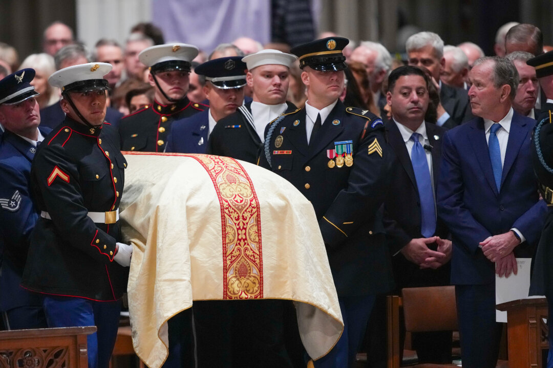 Many dignitaries attended the funeral at the National Cathedral in Washington, a site frequently used for state funerals of former presidents, although Cheney’s was not a state funeral. In attendance were former U.S. Presidents Joe Biden and George W. Bush, the latter under whom Cheney served as vice president for eight years from 2001 to 2009, and who delivered a eulogy for Cheney. In addition to Biden himself, who succeeded Cheney as vice president in 2009, former Vice Presidents Kamala Harris, Mike Pence, Al Gore, and Dan Quayle also attended….