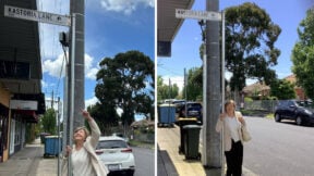 Με περηφάνια και χαμόγελο, η πρόεδρος του Συλλόγου Καστοριανών Αυστραλίας «Η Καστοριά», Ελευθερία Λαλοπούλου, παρακολούθησε πρόσφατα την τοποθέτηση της πινακίδας «Kastoria Lane» σε ηλεκτρική στήλη δίπλα στο κτίριο του συλλόγου στο North Coburg.