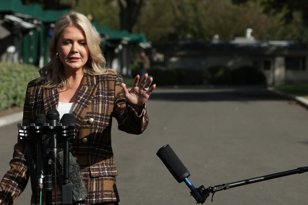 White House press secretary Karoline Leavitt holds an impromptu briefing with reporters on the North Lawn, reacting to today’s EU-U.S. trade talks outcome on tariffs, China’s overcapacity, and the July 2025 tariff framework implementation at 3:30 p.m. ET on Nov. 24.