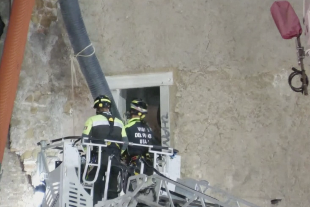 Members of emergency services work at the scene to rescue a worker after part of the Torre dei Conti tower collapsed near Via dei Fori Imperiali, near the Colosseum in Rome, Italy, on Nov. 3.
