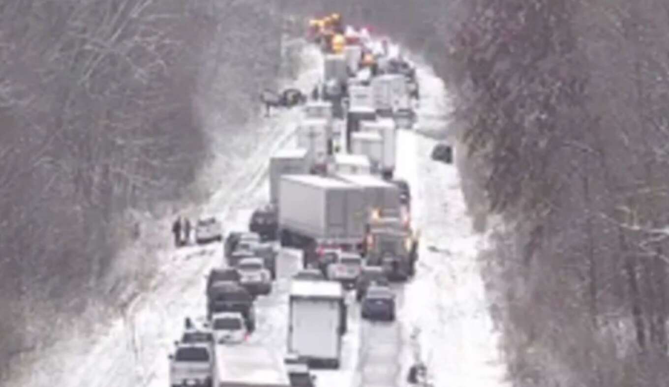 Η καραμπόλα σημειώθηκε στον αυτοκινητόδρομο Interstate 70 μετά από χιονόπτωση που σημειώθηκε το Σάββατο με αποτέλεσμα να υπάρξουν και εκατοντάδες ακυρώσεις πτήσεων.