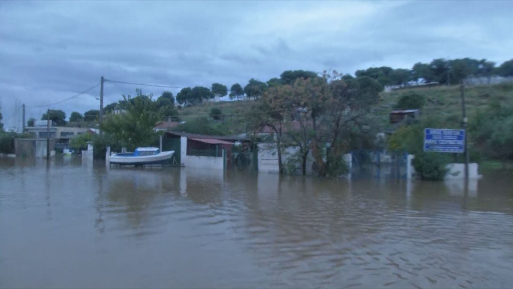 Σε ποτάμι έχει μετατραπεί η Παλαιά Εθνική Αθηνών – Κορίνθου με το νερό να έχει φτάσει στις αυλές σπιτιών.