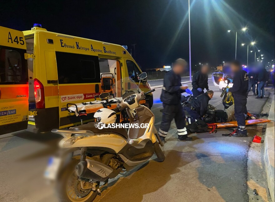 Σύμφωνα με το flashnews.gr το περιστατικό συνέβη στη διασταύρωση της Αγίας Μαρίνας όταν ένα αυτοκίνητο συγκρούστηκε με μηχανή.