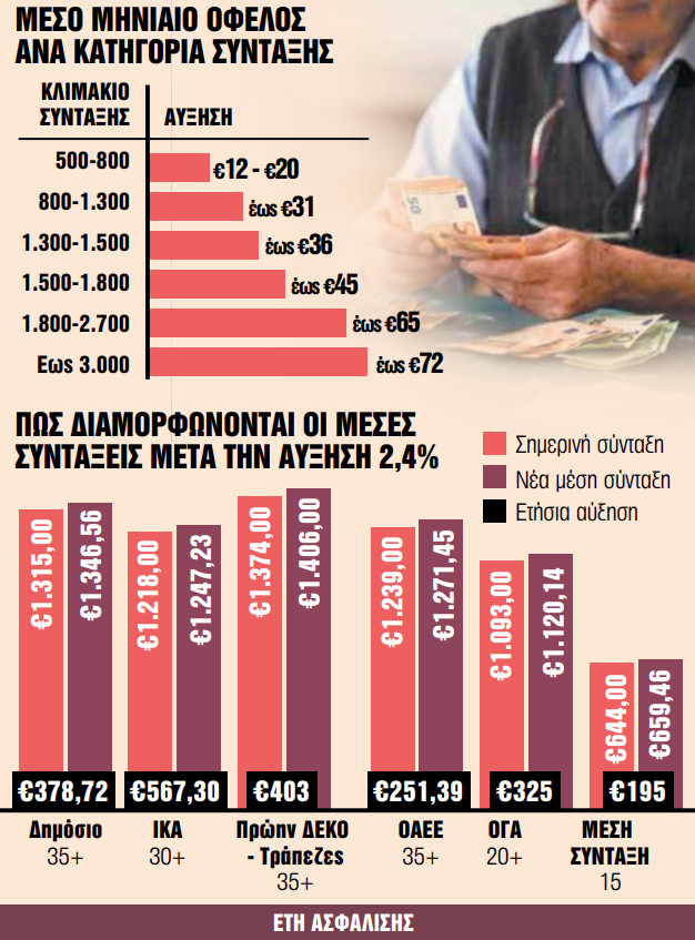 • 888 εκατ. ευρώ λόγω της φορο-εισφοράς υπέρ ΕΑΣ σε κύριες και επικουρικές συντάξεις.