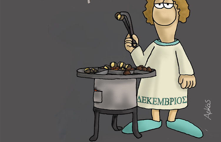 Με έναν απόλυτα χειμωνιάτικο τόνο και το γνώριμο χιούμορ του, ο Αρκάς υποδέχεται τον Δεκέμβριο με νέο σκίτσο. Ο αγαπημένος σκιτσογράφος παρουσιάζει τον μήνα προσωποποιημένο, ντυμένο με λευκό χιτώνα που γράφει «Δεκέμβριος», να ψήνει κάστανα πάνω από ένα μικρό μαγκάλι — μια εικόνα που συμπυκνώνει την ελληνική εκδοχή του χειμώνα: κρύο, μυρωδιά καστανών και γκρίνια… με χαμόγελο.