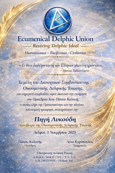 Ms Pigi Lykoudi became a Culture Ambassadress of the Ecumenical Delphic Union on 3rd of November 2025