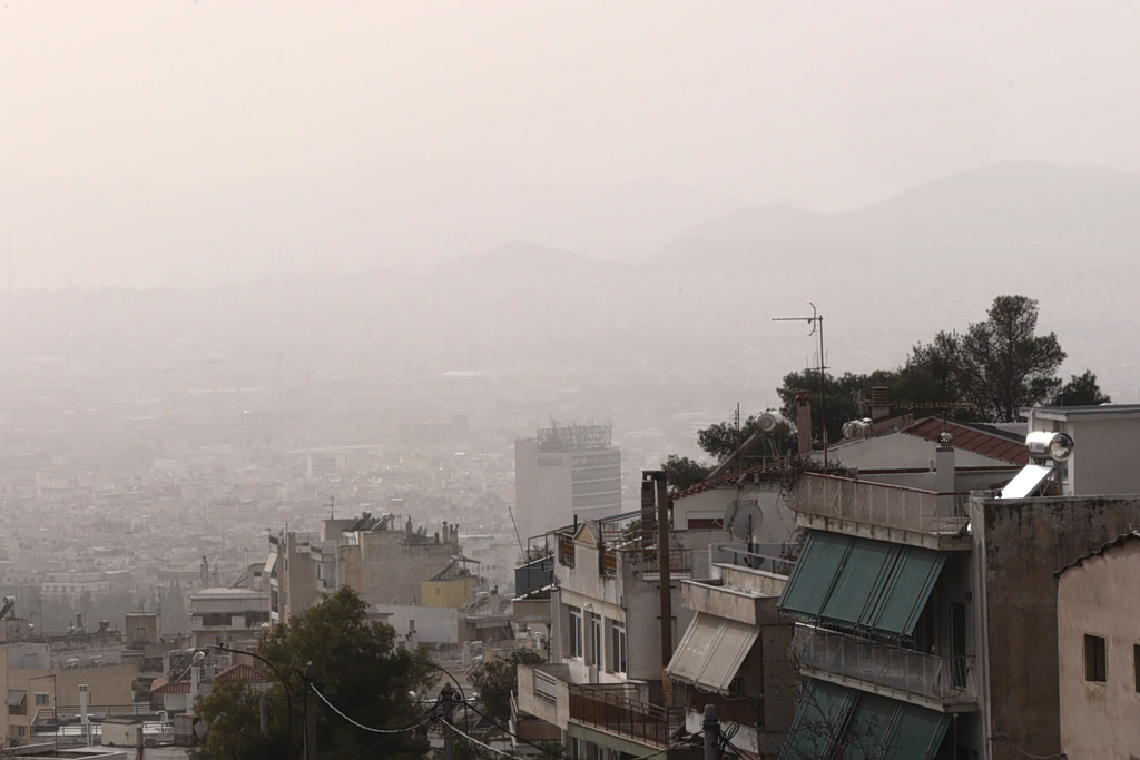 Στιγμιότυπο από την Αθήνα, . Η αφρικανική σκόνη βρίσκεται για ακόμα μία φορά πάνω από την Αθήνα δημιουργώντας αποπνικτική ατμόσφαιρα. Η σκόνη έχει καλύψει πολλές περιοχές της χώρας, αφού ευνοείται η μεταφορά της από την Αφρική λόγω των ισχυρών νότιων ανέμων Στιγμιοτυπα απο Κυψελη και Πολυγωνο . (ΓΙΩΡΓΟΣ ΚΟΝΤΑΡΙΝΗΣ/EUROKINISSI)