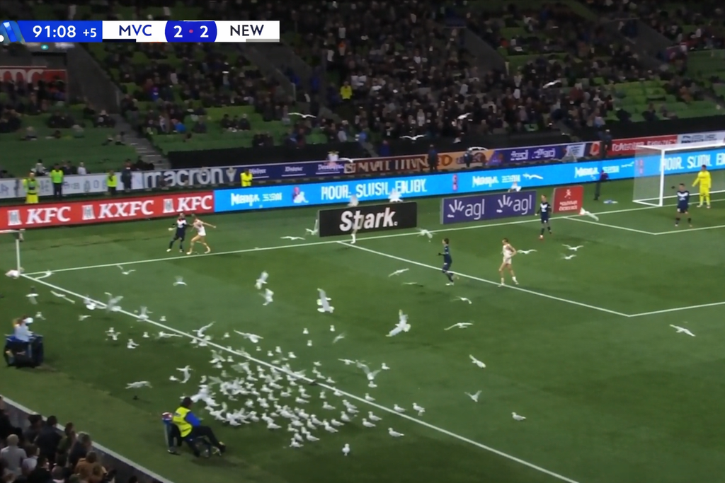 Στο πρώτο λεπτό των καθυστερήσεων οι παίκτες της Νιούκασλ Τζετς είχαν κερδίσει ένα φάουλ. Εκεί, όμως ένας σμήνος από γλάρους έκανε την εμφάνιση του μέσα στο αγωνιστικό χώρο.
