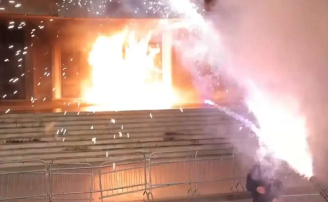 Arnavutluk’ta hükümetin yolsuzluk nedeniyle istifasını isteyen protestocular, Başbakanlık binasını molotofkokteyli ve havai fişeklerle hedef aldı. pic.twitter.com/Vmzsd9u3IA